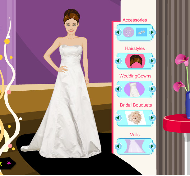 Arregla a la novia, a la que podrás vestir y peinar con trajes y peinados de ensueño para boda. Disfruta jugando a vestir a la chica con ropa y vestidos para novias.