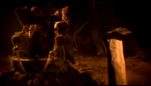 Lo mejor del vídeo son los decorados con las calaveras y esqueletos, en plan desolación port-guerra, o las secuencias que va con el traje de harapos y herida con sangre, que parece que haya salido de un psiquiátrico. Debe ser el morbo de la locura XD.