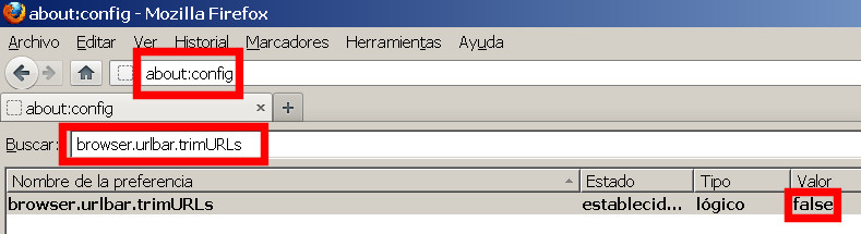 Pues bien, en vez de dejar lo de ocultar el http:// como una elección a escoger desde las opciones visibles a simple vista, lo han escondido entre el registro de opciones. Esto no lo entiendo, porque puede ser esta misma característica u otra, pero no me parece bien que con cada cambio de versión, no dejen la opción de restaurar lo que hayan modificado en las novedades.