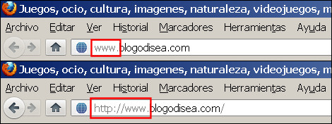 Como en cualquier actualización de Firefox (modo irónico ON) suelen hacer la vida más fácil al usuario y cualquier cambio es positivo (modo irónico OFF), decidieron no sé desde qué versión (creo que es la actual, la 11, al menos eso creo) ocultar el protocolo http:// que aparece en la barra de navegación, formando parte de la URL que visitamos. Tan sólo se muestra si es una página segura, mostrando https:// en cada momento para que sepamos que visitamos una web segura.