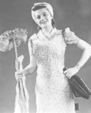 GIMNÁSTICA: Una mujer que tenga que atender a las faenas domésticas con toda regularidad tiene ocasión de hacer tanta gimnasia como no hará nunca, verdaderamente, si trabajase fuera de su casa. Solamente la limpieza y abrillantado de los pavimentos constituye un ejemplo eficacísimo, y si se piensa en los movimientos que son necesarios para quitar el polvo de los sitios altos, limpiar los cristales, sacudir los trajes, se darán cuenta de que se realizan tantos movimientos de cultura física que, aun cuando no tienen como finalidad la estética del cuerpo, son igualmente eficacísimos precisamente para este fin. (Teresa. Revista de la Sección Femenina, 1958.)