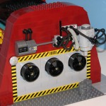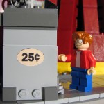 La cabina de suicidio lleva sólo un cartelito con el símbolo de 25¢ para que los niños no se sintieran violentos con el tema del suicidio, ya que todas las piezas han estado expuestas en el centro Lego de Northbrook, en Illinois.