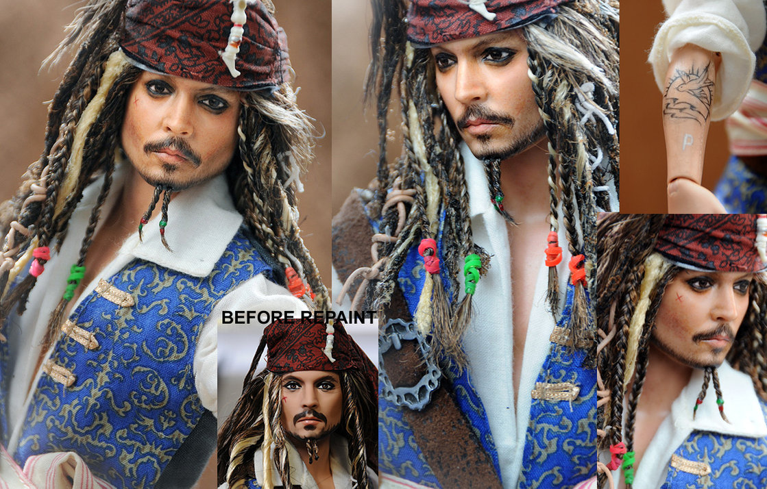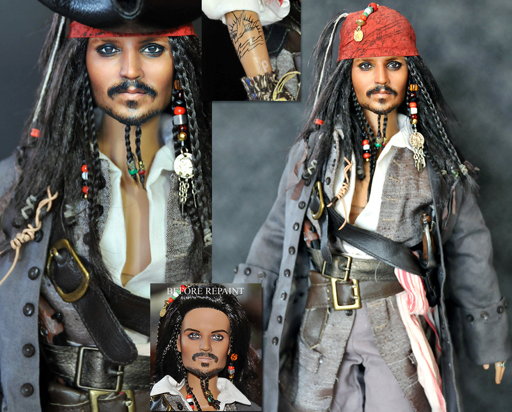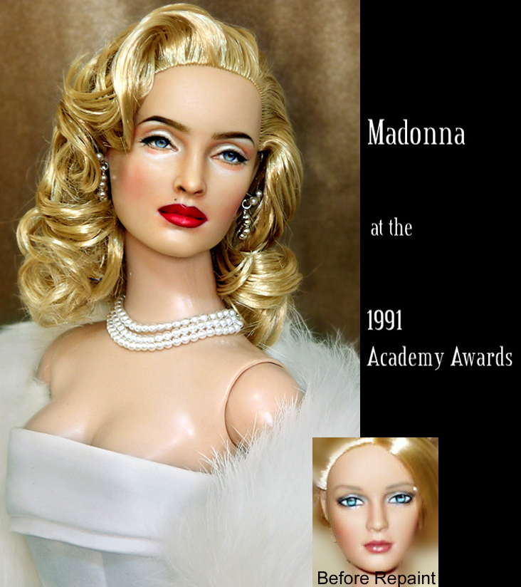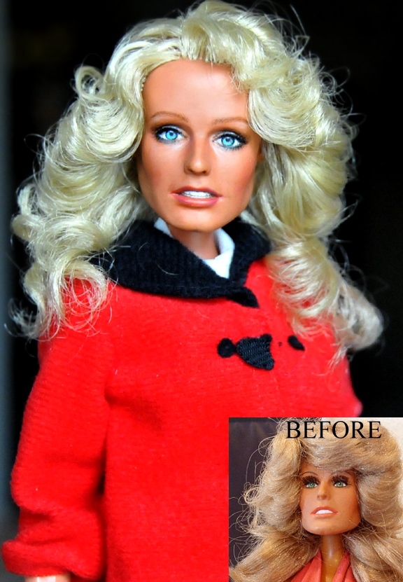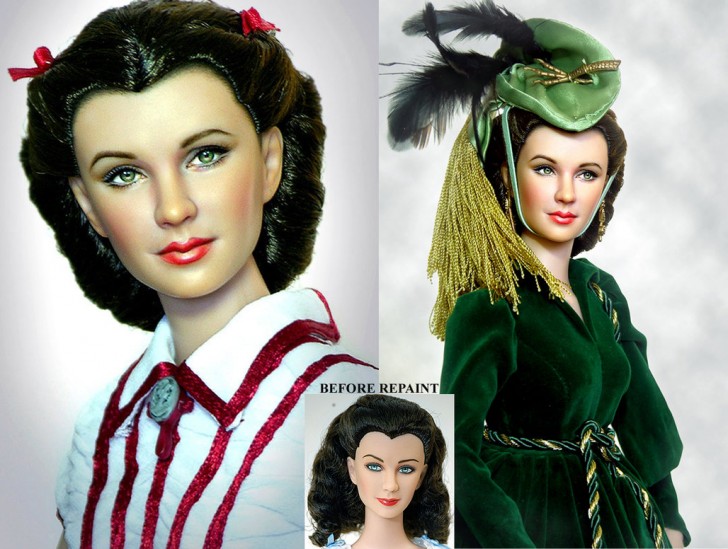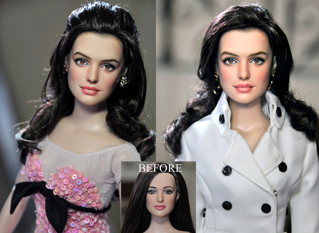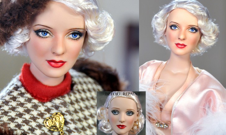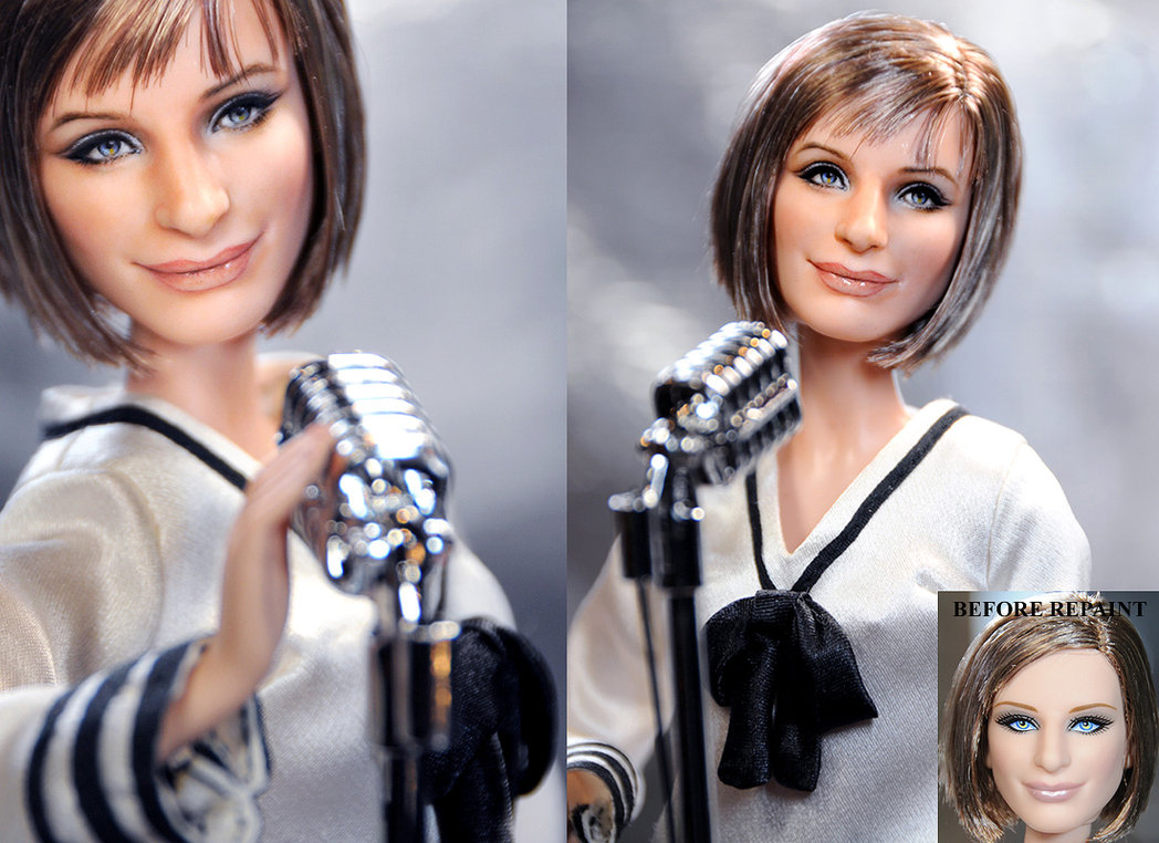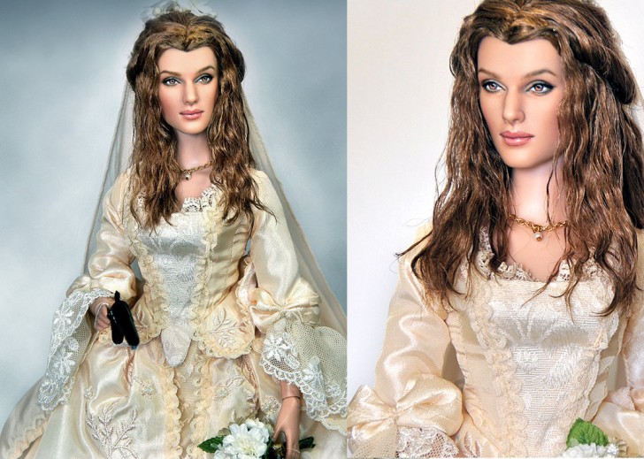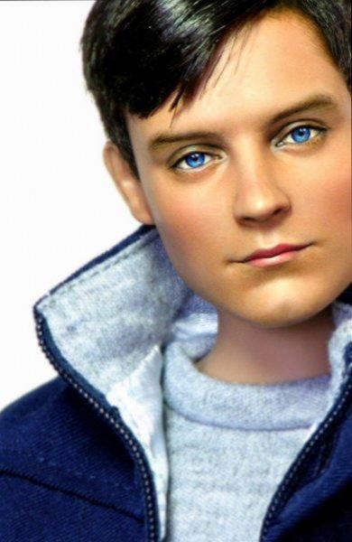 Estas muñecas de un estilo Barbie han sido creadas por el filipino Noel Cruz de 47 años. La Barbie Angelina Jolie fue subastada en Ebay por unos 2.350 euros. Para realizar estas muñecas, retira la pintura de una Barbie original (o una muñeca parecida) y la colorea empleando materiales acrílicos hasta lograr una muñeca de gran parecido a la actriz. Imagino que las recreaciones masculinas estarán desarrolladas a partir de muñecos Ken.