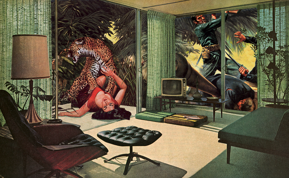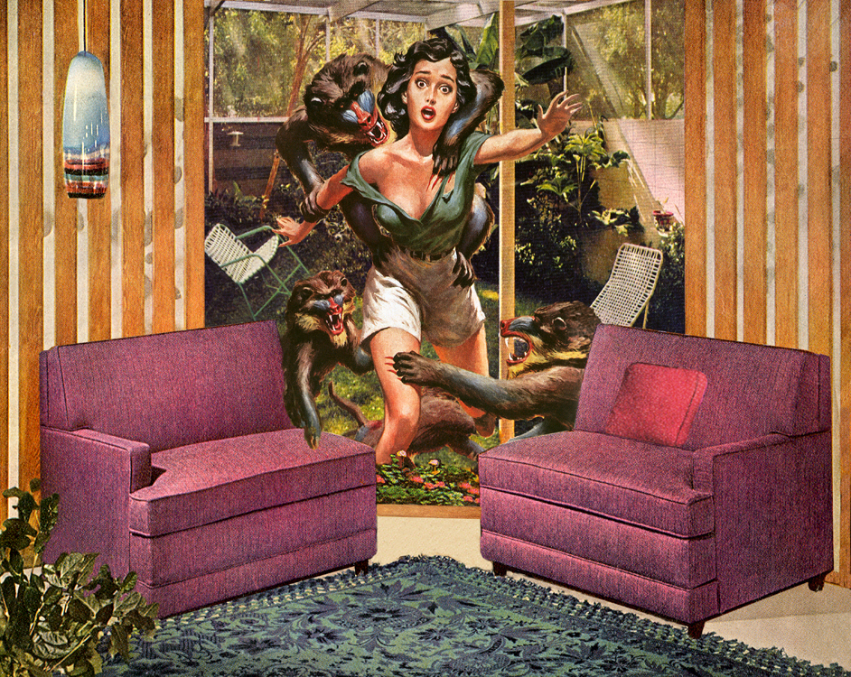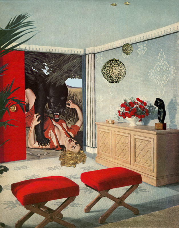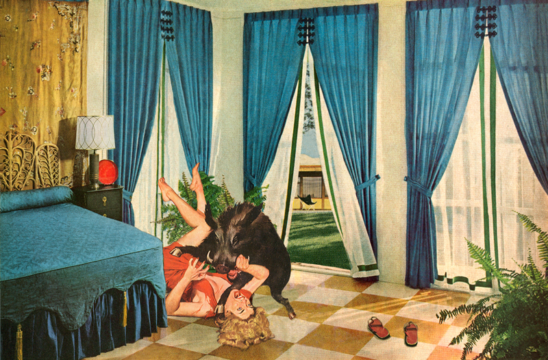 «True Adventures in Better Homes» («Aventuras verdaderas en casas mejores»), es una serie de collages de Nadine Boughon, que combina imágenes de revistas de aventuras protagonizadas por hombres fornidos y mujeres sexys de los años 50 y 60, con fotos de casas inmaculadamente perfectas y ordenadas de la misma época.