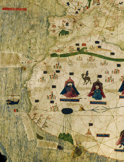 Más allá del cabo se extendía el mare Tenebrosum y el mapa dibujaba una especie de monstruo marino, una serpiente gigantesca que enroscaba entre sus anillos a una nave y devoraba a un tripulante.
