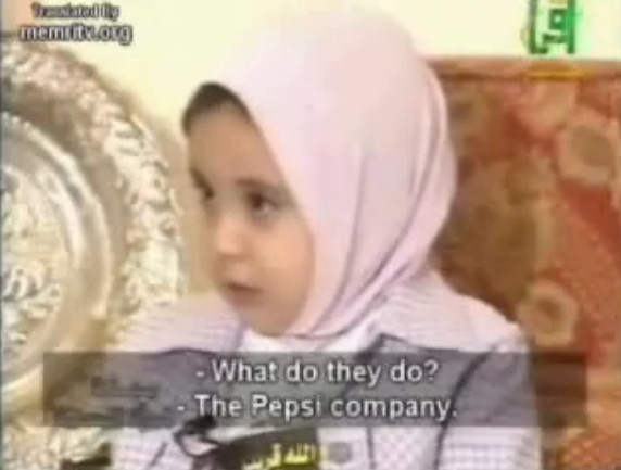 Este vídeo procede de la televisión Iqra TV de Arabia Saudí y se emitió el 7 de mayo de 2002. En él vemos a una presentadora-reportera orgullosa de ser musulmana y de los auténticos musulmanes, y nos muestra a una niña de tres años llamada Basmallah que es una ricura. Vamos, que la niña quiere la exterminación de todos los judíos como el que quiere un caramelo, y todo porque su profeta Mahoma dijo aquello de «He sido ordenado por Alá para luchar contra todos los infieles hasta que se sometan a la realidad de que no hay Dios pero sí Alá, y Mahoma es su mensajero” o «Sométanse y testifiquen que no hay Dios, pero sí Alá y Mahoma es el apóstol de Alá, antes de que pierdan la cabeza».