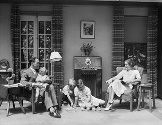 Me parto con los carteles promocionales de antaño que recreaban entornos familiares idílicos, en los que los padres mostraban interés por lo que hacían los hijos, cosa que dista de la real realidad XD. Esos carteles publicitarios en los que toda la familia se reunía en torno al producto o electrodoméstico que había adquirido, como si fuese el acontecimiento familiar del año. Aparecían como si su vida hubiese cambiado por ello y pretendían hacernos creer que nosotros (y nuestra familia) también experimentaríamos eso si comprábamos el producto.