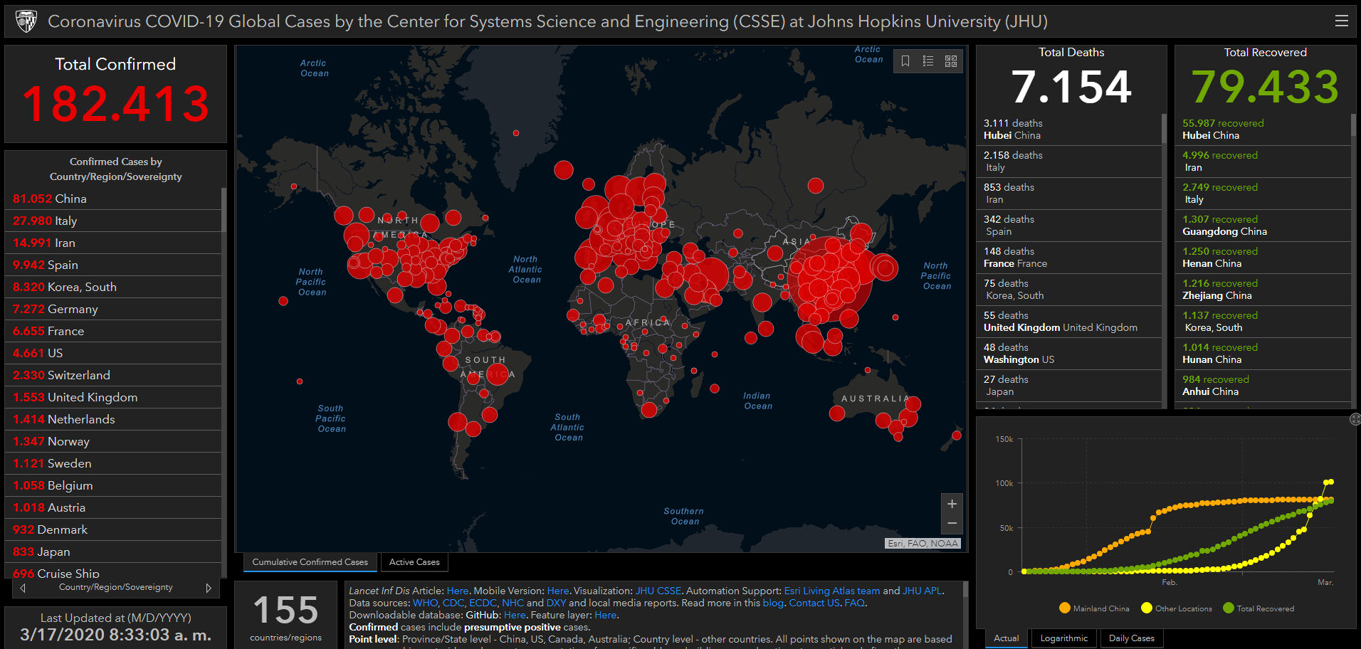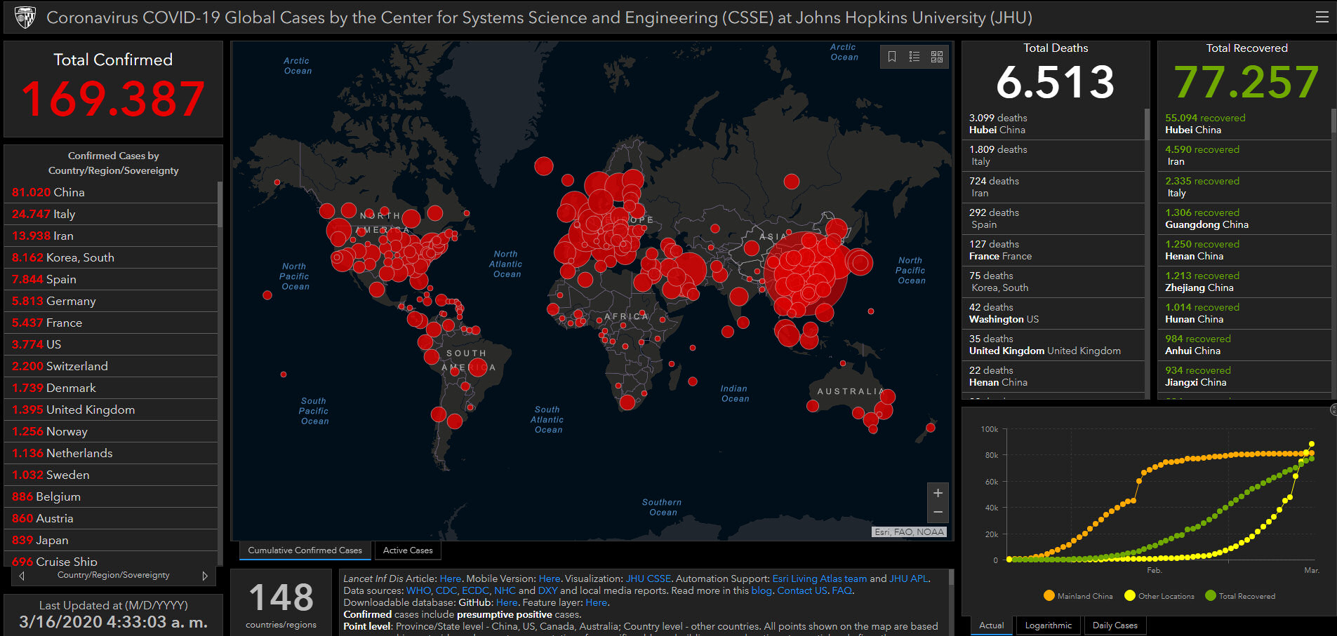 Mapa de estadísticas mundiales de la pandemia de Covid-19 para el 17 de marzo de 2020, desglosadas por países, infectados, muertos y personas que han logrado recuperarse. El porcentaje de mortandad por Covid-19 queda en un 3,90%. Para el que quiera datos muy detallados sobre España en el día 16 de marzo de 2020, ayer, … Leer más