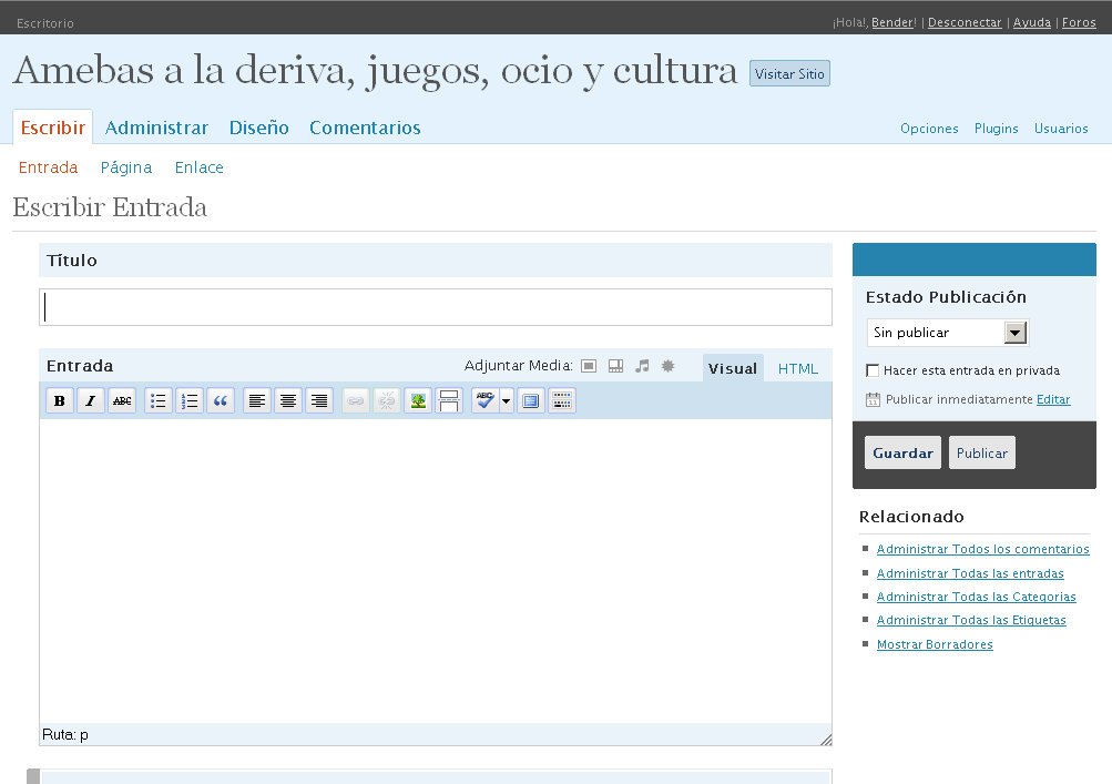 Este es el panel de control, la página de escribir las entradas que hay nueva.