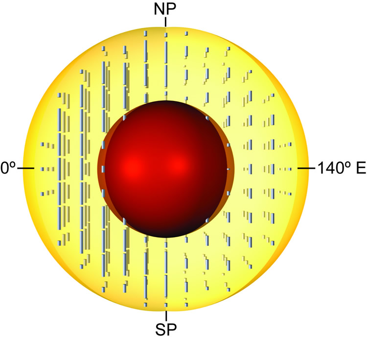 Contrariamente, las ondas sísmicas mostraron de manera clara que existe otra capa de un diámetro de 1.180 km (733 millas), lo que supone menos de la mitad del diámetro del núcleo interior. Según declaró el profesor en sismología Xiaodong Song: “Los resultados logrados sugieren que el núcleo interno exterior está formado por cristales de hierro de fase única con distintos grados de alineación preferida a lo largo del eje de rotación de la Tierra”, explicó.