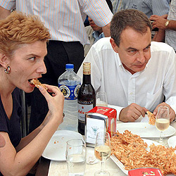 Asisten a la cena personalidades de la realeza, política… En esto que los invitados se sientan a la mesa. Deslumbrados por el lujo de la mesa, Sonsoles (la mujer de Zapatero) le dice a su marido: