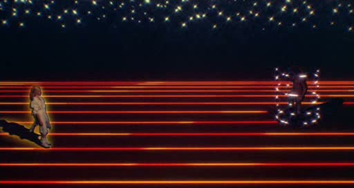 Este es el fragmento de la película donde Kira canta a solas en esos escenarios tan Xanadu, donde las luces de neón brillan a tope marcando contornos.