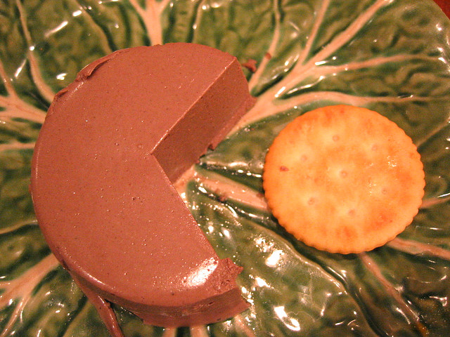 Pac-Man de paté de champiñones junto a una galleta cracker.