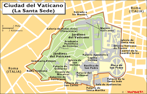Tiene moneda y sellos propios, y la lengua es el latín y el italiano. El nombre de Vaticano procede de los vaticinios que en ella se efectuaban. En 1984 fue declarado Patrimonio Mundial.