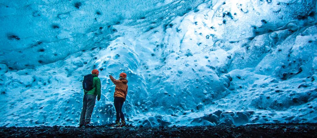 Cerca del lago Jökulsárlón encontramos el glaciar Breiðamerkurjökull, donde podemos disfrutar de las impresionantes cuevas de hielo que se forman por la actividad geotermal. Cuando en invierno las temperaturas bajan, es cuando el hielo se endurece y las cuevas se pueden visitar con seguridad. Como las cuevas varían su forma cada año, siempre es una experiencia nueva. Los colores azules, blancos y tonalidades oscuras crean juegos de luces impresionantes, como si estuviésemos en una cueva de diamantes helados.