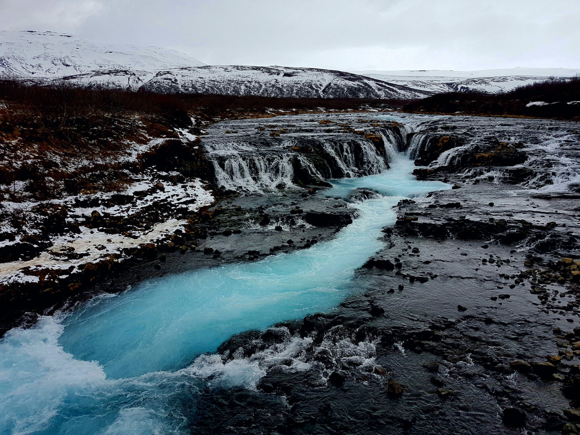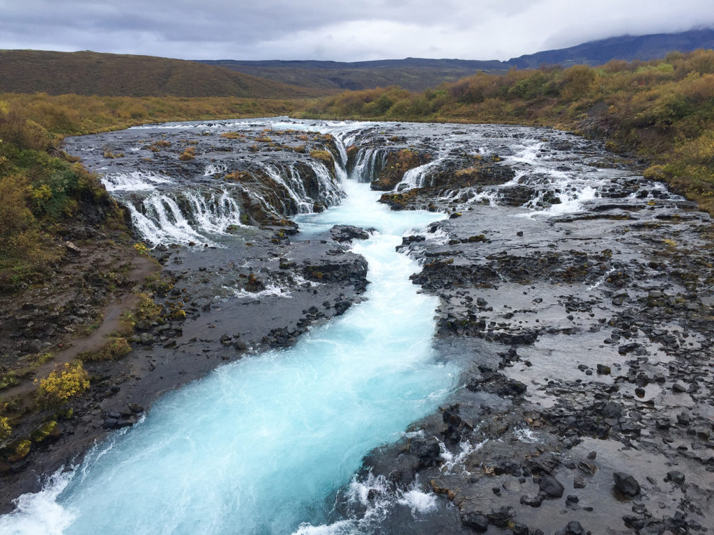 La cascada Bruarfoss está algo alejada de la carretera, situada entre unas montañas. Es uno de esos rincones que sorprenden por su belleza indómita, con una pequeña cascada que se dirige hacia el geiser Geysir y la cascada de Gullfoss. Pero lo que la hace tan especial no es su tamaño, sino el color azul turquesa de sus aguas. Por ello es uno de los emplazamientos preferido por los fotógrafos para tomar largas exposiciones y lograr increíbles resultados.