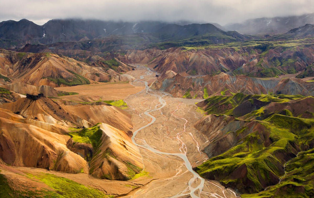 Landmannalaugar es otro impresionante escenario de Islandia repleto de actividad volcánica que está accesible sólo los veranos. Emplazado en la región del volcán Heklay y sus termas naturales, es otro de esos paisajes dignos de disfrutar por su belleza. Este paraje destaca por sus montañas de diferentes colores entre las laderas formadas por la lava, pudiendo apreciar tonalidades que incluyen el rosa, verde, amarillo, azul, negro o blanco.
