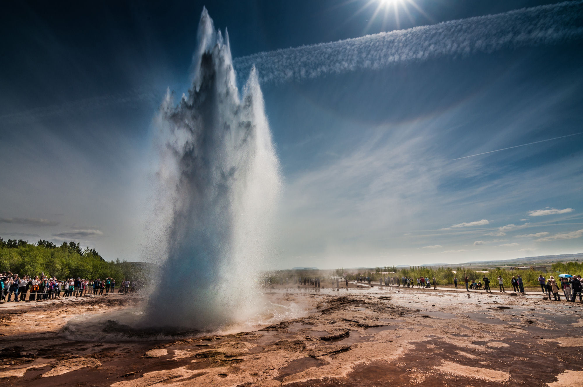 El valle de Haukadalur está al norte del lago Laugarvatn y posee una fuerte actividad geotermal que genera deslumbrantes géiseres entre los que son conocidos el Geysir y el Strokkur.