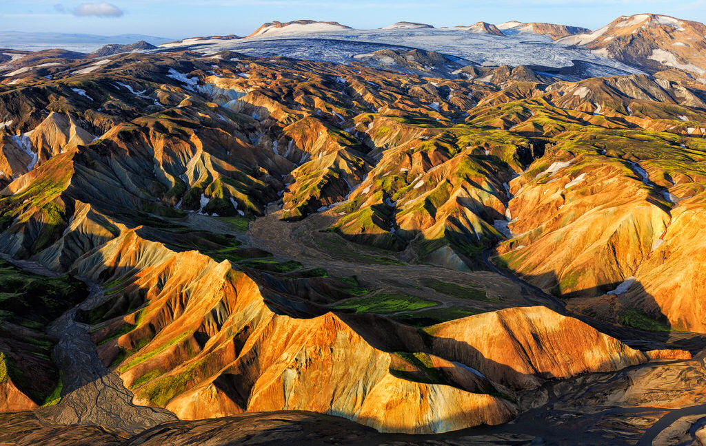 Islandia es una tierra que ofrece contrastes naturales únicos, como la eterna lucha que libran el fuego y el hielo en áreas como Fimmvörðuháls. Aquí encontramos una región de glaciares por la que discurre una de las rutas de senderismo más conocidas del país: la senda de excursionismo Fimmvorduhals. A través de la ruta, veremos fisuras por las que emerge lava que convierte la nieve en vapor. Es difícil encontrar paisajes de tal magnitud y belleza.