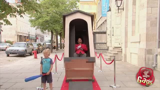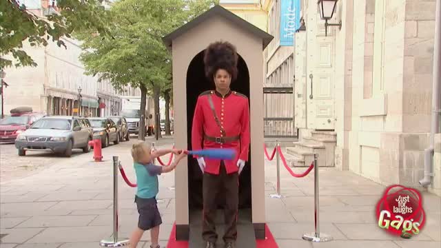 En esta broma de Just for Laughs se aprovechan de la inocencia de las víctimas para hacerles creer que en una garita se encuentra inamovible un soldado de la Guardia Inglesa. Cuando algún turista planea hacer una foto al guarda, aparece de la nada un niño fuera de sí con un bate y golpea las partes del soldado ante la mirada de sorpresa de los engañados.