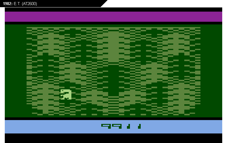 No hay más que ver la portada del juego que trato en esta edición, E.T. de la Atari 2600, en la que vemos una escena extraída de la película. Hala, ponemos un fotograma de la peli, y nos quedamos tan anchos. Pero claro, luego visionad las imágenes del juego, y es “pa” cagarse. Menos mal que estas situaciones se han arreglado a día de hoy, y ya disfrutamos al menos de cosas más parecidas a las reflejadas en las portadas de los videojuegos.