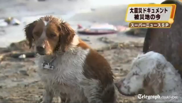 Un spaniel que se encontró entre la devastadora escena de escombros en la prefectura de Iwate, guió a los reporteros de televisión hasta su congénere y amigo, otro perro que se encontraba malherido tras el tsunami. Los dos perros fueron rescatados por los veterinarios de la Asociación de Rescate y Ayuda a Animales en Terremotos de Japón.