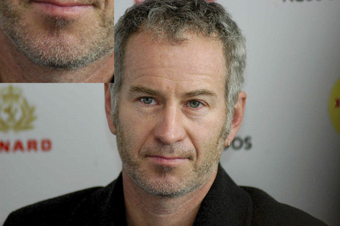 La perilla de Mario, dice que la sacó de una foto de John McEnroe. La nariz, de un hombre mayor.
