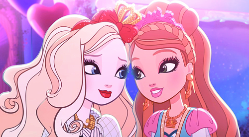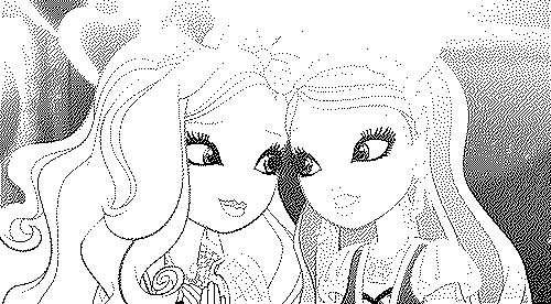 Si eres del grupo de las Royal, seguro que disfrutas mucho con este dibujo para colorear a Ashlynn Ella y Apple White en una imagen donde demuestran lo mucho que se quieren como amigas. Aparte de la ilustración en blanco y negro, se adjunta la imagen de donde proviene el dibujo para imprimir, para que puedas ver el colorido original.