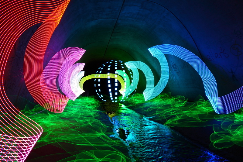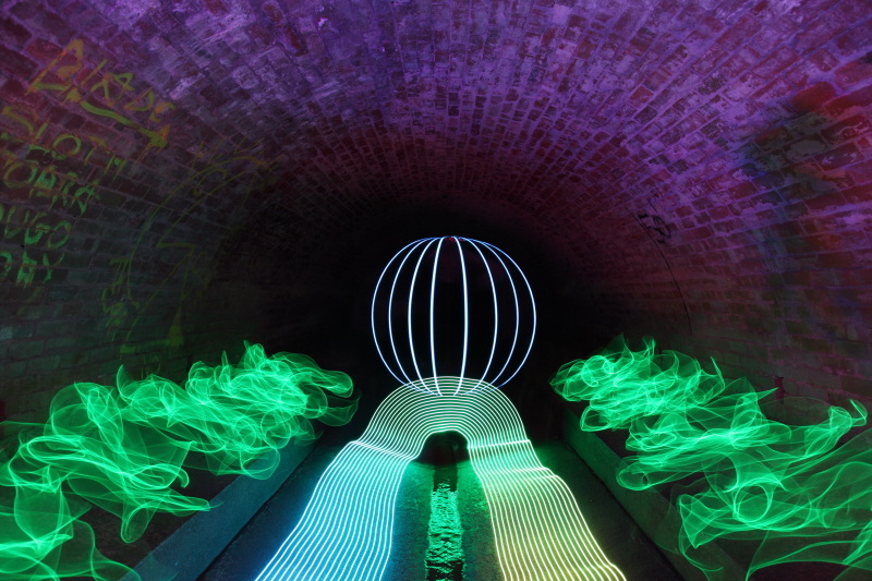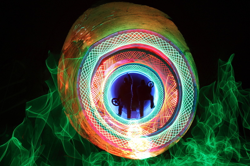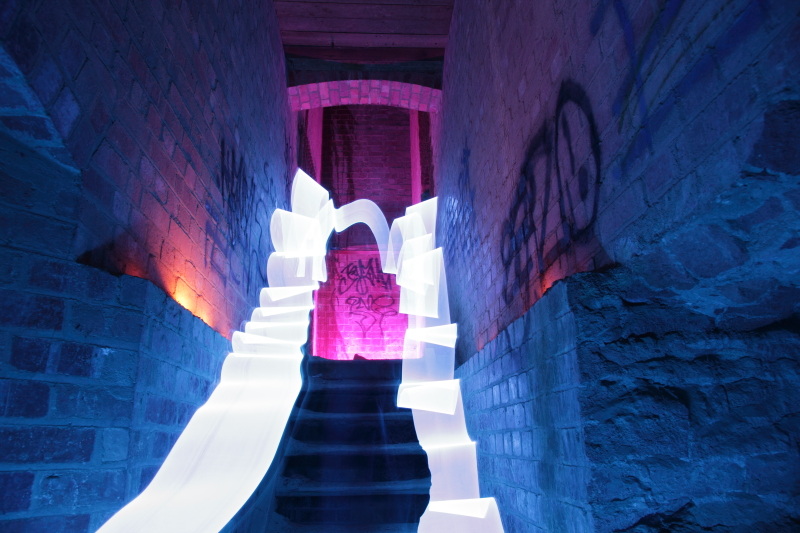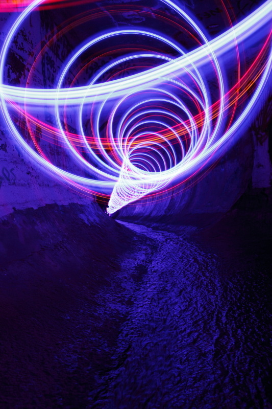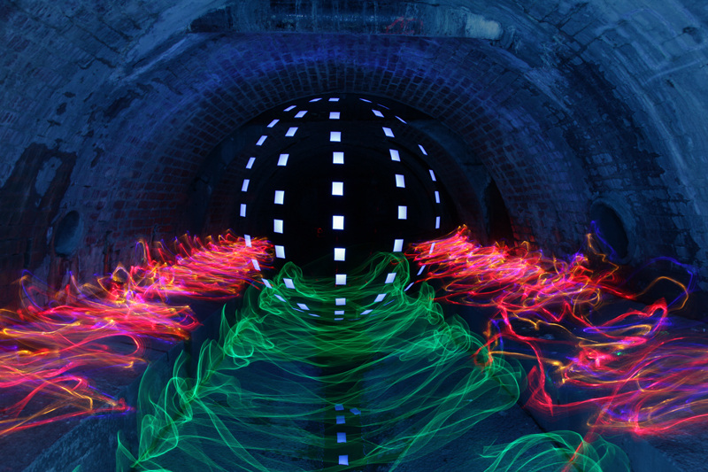 En la página de Flickr del usuario /*synack*/, podemos ver cómo desarrolla sus trabajos este artista que trabaja con diodos emisores de luz (LED) en sus obras. Parte explorador urbano y otra parte fotógrafo, realiza unas impresionantes imágenes donde pinta con luz unos vistosos decorados.