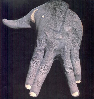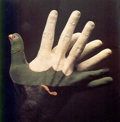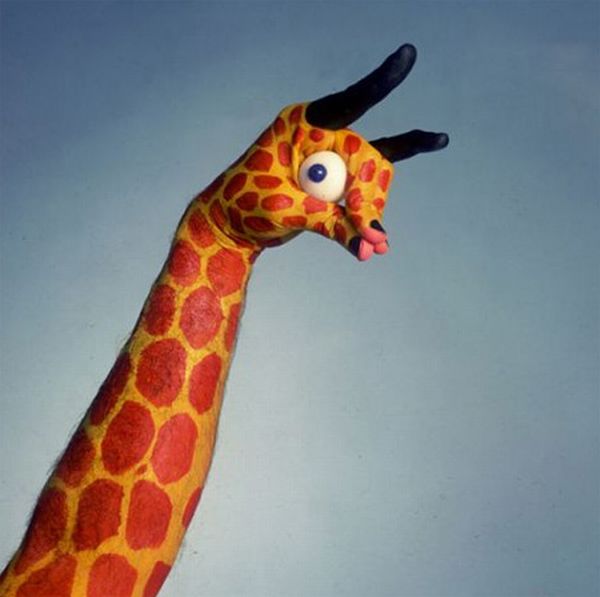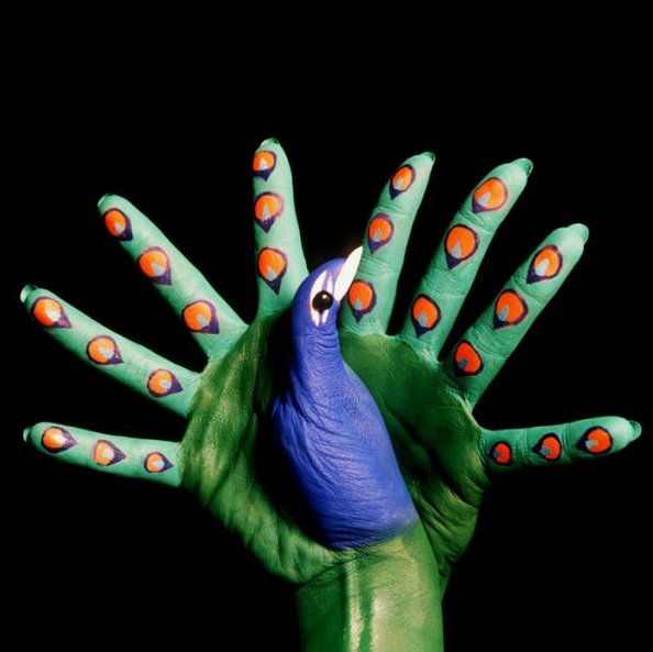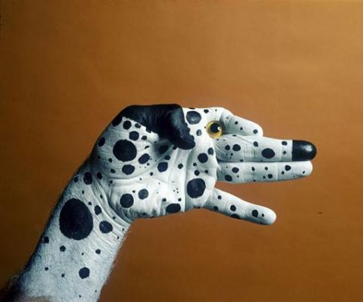 Elefantes, cebras, águilas, flamencos, jirafas, serpientes, gallinas, gatos, conejos, cisnes, tucanes, pavos reales, perros, tigres, leopardos y demás felinos aparecen retratados empleando manos, aparte de otras figuras, como jugadores de fútbol, pianistas, corredores de atletismo o directores de orquesta. Toda una variedad al alcance de la imaginación y el buen saber hacer de la pintura.