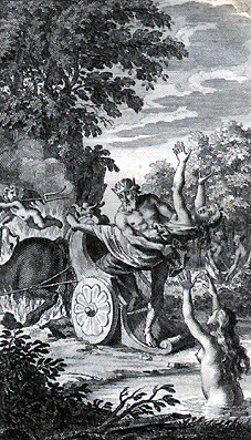 Orgulloso con su presa, lanzó a todo correr sus caballos negros, abrió la tierra con un golpe de su cetro y se hundió en el reino de las tinieblas.