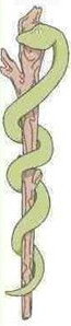 Según cuenta una historia, el médico Esculapio, que vivía en la región de Tesalia, se hallaba en la casa de Glauco, quien sufría una grave enfermedad que le hacía estar al borde la muerte. De repente, una serpiente entró en la morada y Esculapio la mató con su bastón.