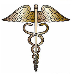 En el siglo IX a.C., surgió un nuevo distintivo o emblema para representar la medicina, que se llamó bastón de Esculapio (o Asclepio) y consiste en una culebra de Esculapio (Elaphe longissima) enrollada en una vara mientras su cabeza mira a la izquierda. A los lados, figura una rama de roble y otra de laurel.