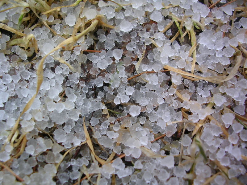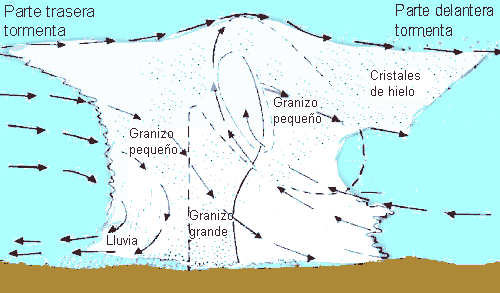 Llega un momento que las partículas, que pueden alcanzar el tamaño de pedruscos de hielo, pesan tanto que el aire es incapaz de sostenerlas más y caen a la tierra. Si desmenuzamos una piedra de granizo, veremos que está compuesta de varias capas y suelen tener un tamaño que oscila entre el de un guisante y una pelota de golf.