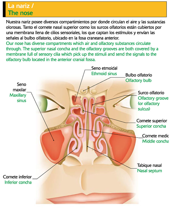 Partes de la nariz encargadas del olfato.