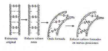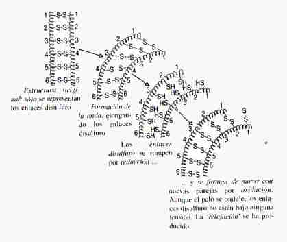 Si las uniones de azufres forman líneas y quedan rectas, el pelo será liso. Si los enlaces proteínicos quedan desalineados, las filamentos de queratina formarán espirales y el pelo quedará rizado.
