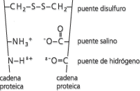Enlace de hidrógeno y otro de disulfuro formado por dos partículas de cisteína.