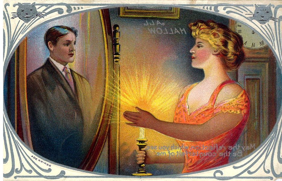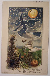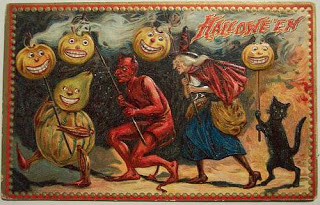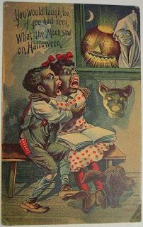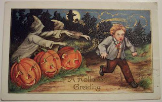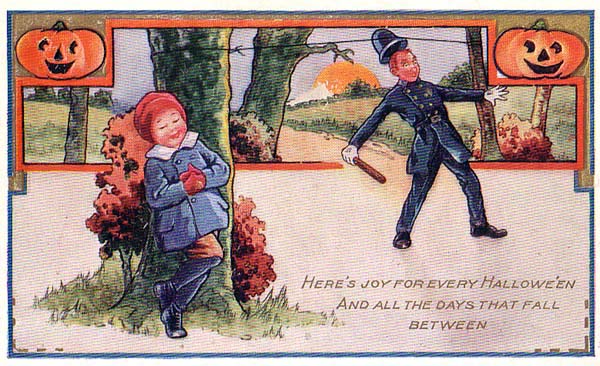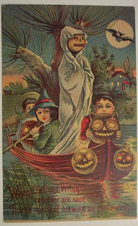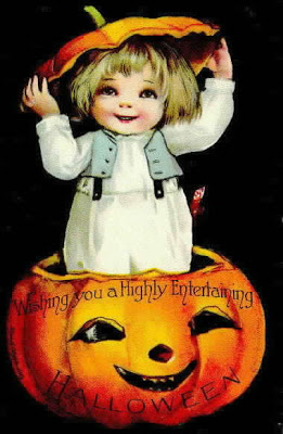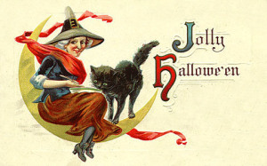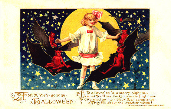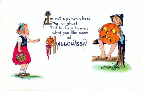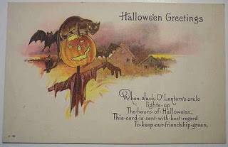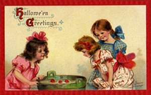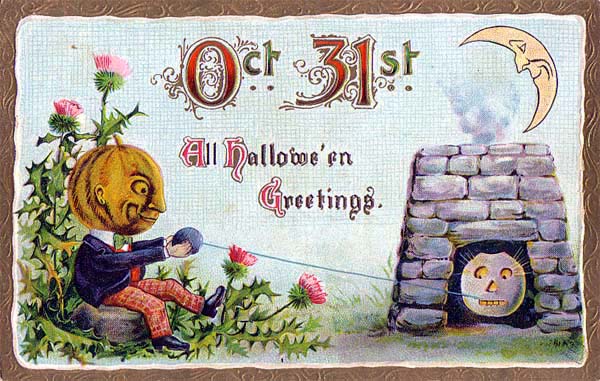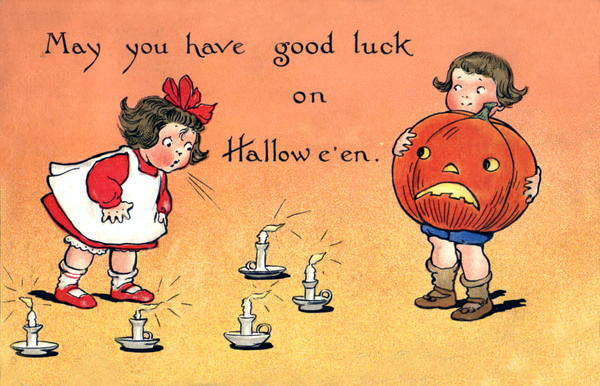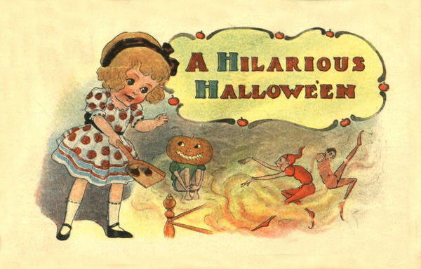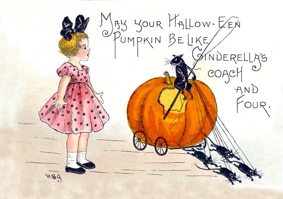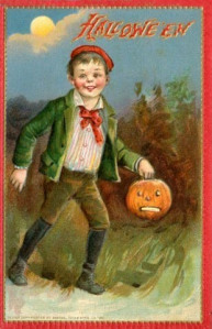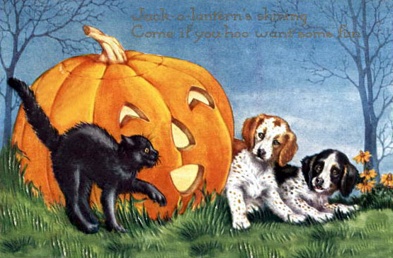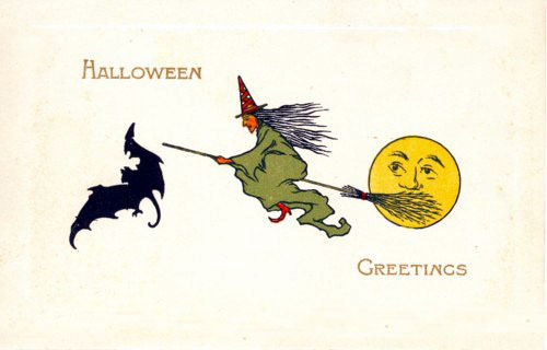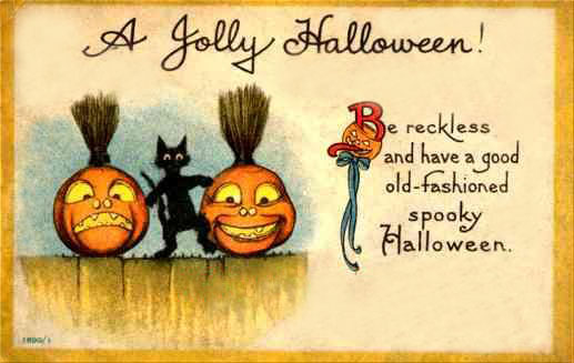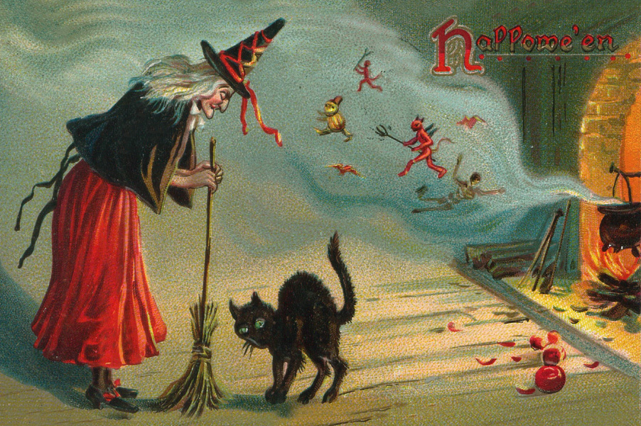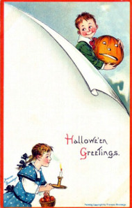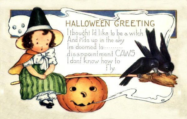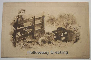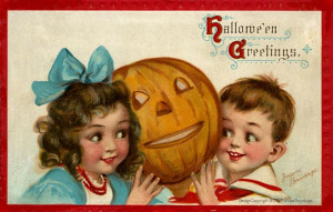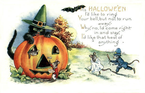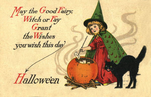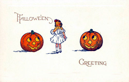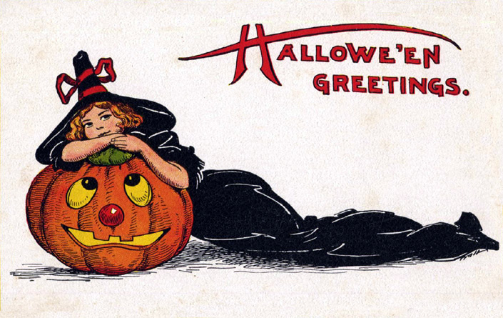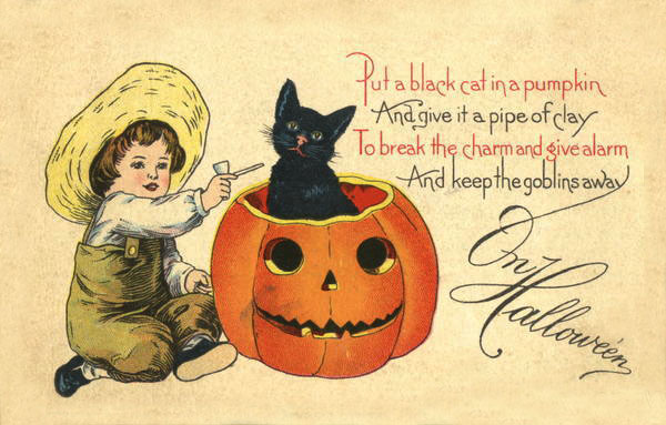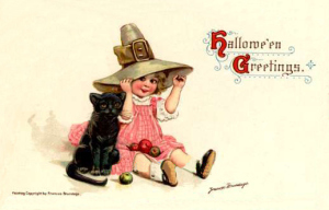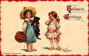 Postales de Halloween con un toque antiguo que las hace más encantadoras si cabe. En ellas predominan las brujas, gatos negros, calabazas, y muchos niños que les dan un aire de candor a todas las ilustraciones.