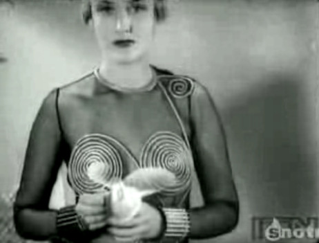 Este es un vídeo de la década de los años 30 donde se relata y muestra, de manera futurista, la moda que iba a estar en boga en el nuevo siglo XXI, por aquel entonces tan distante. Parece que estaban obsesionados con las partes de prenda de quita y pon con cremalleras.