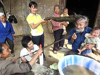 Aquí tenemos la noticia de un hombre octogenario que lavó su cabello por primera vez tras 26 años sin haberlo hecho. Se necesitaron doce personas que tras cinco horas, consiguieron lavar el pelo (que medía más de 182 centímetros) de Luo Shiyuan. También la barba, que medía bastante igualmente, más de 150 centímetros.
