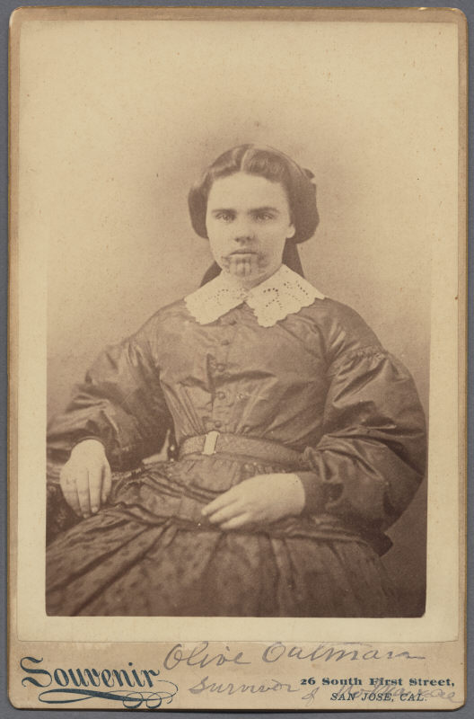 Olive Oatman fue la primera mujer blanca tatuada en los Estados Unidos. Después de que su familia fuese asesinada por los indios Yavapai durante un viaje hacia el oeste en la década de 1850, fue adoptada y criada por los nativos a la edad de 13 años, los cuales le confirieron un tatuaje tribal tradicional. Cuando se pagó un rescate por ella, Olive tenía 19 años y se convirtió en una celebridad.
