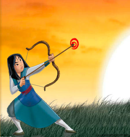 La princesa Mulán tiene que practicar su puntería con un sencillo juego muy adictivo en el que tendrá que tirar flechas con tiro con arco. Con las teclas arriba-abajo controlaremos lo alto o bajo del ángulo de disparo. Con la derecha-izquierda modificaremos la tensión o fuerza con la que realizaremos el disparo. Una vez preparado, dispararemos con la barra espacio para ver si hemos hecho bien los cálculos de puntería.
