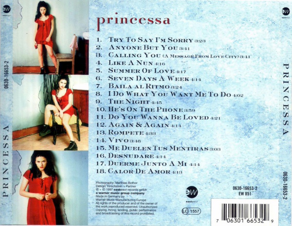 Bajo el nombre artístico de Princessa se encontraba la madrileña Monica Capel Cruz, que desde muy pequeña estuvo ligada al mundo de la canción, hasta que a mediados de los años 90 consiguió hacerse un pequeño hueco en el panorama musical con algunas canciones Eurodance, como este «Calling you», que daba nombre a su segundo disco. Con este álbum logró un gran éxito en países como Alemania, Japón o Finlandia.