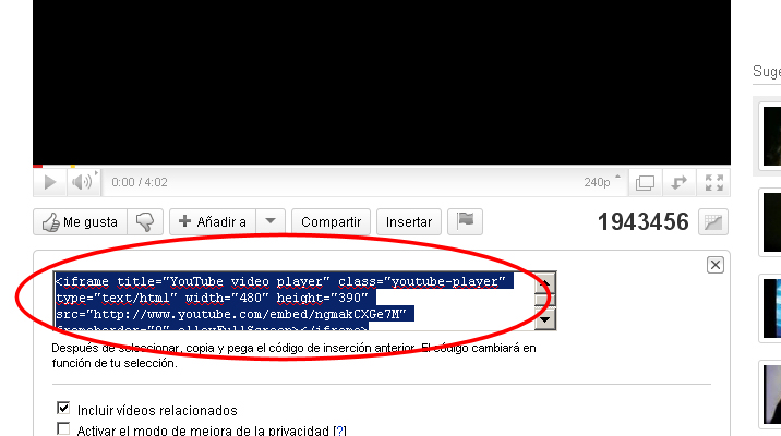 En verde os he marcado los valores que debemos cambiar en cada caso específico. Lo de los números (en el ejemplo 640 y 390) no tiene mucho secreto, ya que definen el ancho (width) y el alto (height) del vídeo en píxeles. Si nuestro blog tiene un ancho menor, debemos modificarlos para no invadir los bordes exteriores del post. Una vez que tengamos pensado el ancho y alto adecuado para nuestro blog, no tendremos necesidad de cambiar estos valores más adelante.