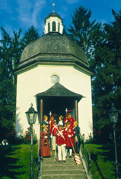 Todas las Nochebuenas la capilla, emplazada en un sugestivo jardín poblado de abetos que lucen un espeso manto de nieve, es engalanada e iluminada especialmente, teniendo lugar allí las celebraciones navideñas con gran participación de feligreses, muchos de ellos vestidos con sus trajes tradicionales.