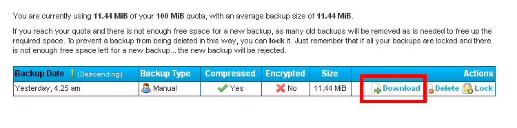 Para solucionar este problema, he encontrado otro plugin que nos permitirá programar una copia de seguridad con la frecuencia que prefiramos (diaria, semanal…) y la alojará gratuitamente en una página web. Posteriormente podremos descargar cuando queramos las copias que quepan en los 100 megas que tienen de espacio para almacenar en dicha página. Si ocupamos los 100 megas, las copias más antiguas se irán borrando para dejar paso a las más recientes, por lo que poseeremos una especie de baúl bastante útil para tener copias de las bases de datos por orden de antigüedad.