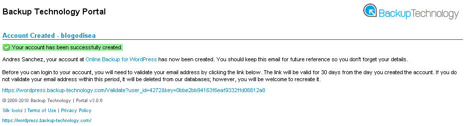 Ahora nos hacemos una cuenta en la página https://wordpress.backup-technology.com/Create_Account