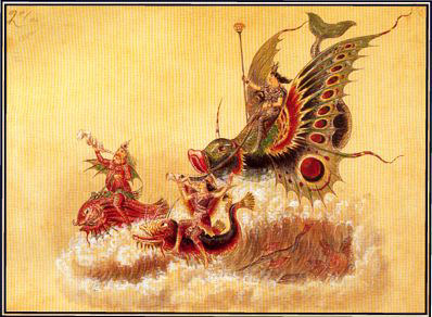 Él se esforzaba, empleando innumerables metamorfosis, por escapar de los que le habían apresado: unas veces imitaba la forma de un jabalí, de un tigre o de un dragón; otras se convertía en agua fluida, una llama crepitante, un árbol o una roca.