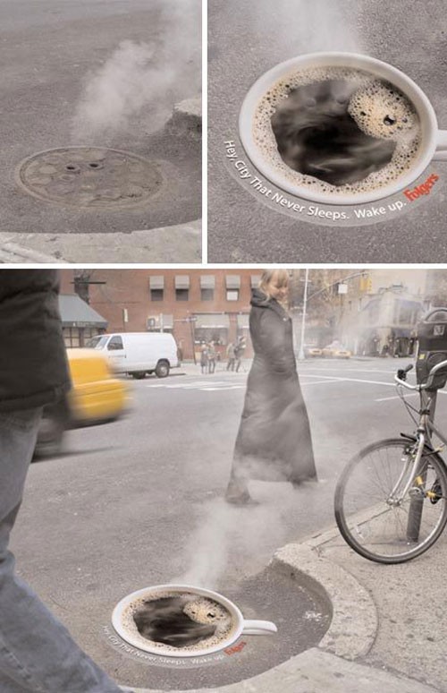 Ey, la ciudad nunca duerme. Despierta. Café Folgers.