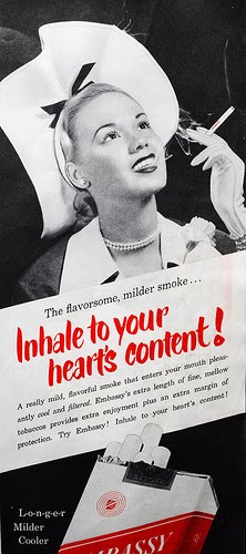 Cómo cambian los tiempos,… ¿o no? ¿No se daban cuenta antes de lo mal que olía el humo de tabaco incrustado en la ropa, o del color amarillo rancio en los dedos y dientes? Vaya glamour…